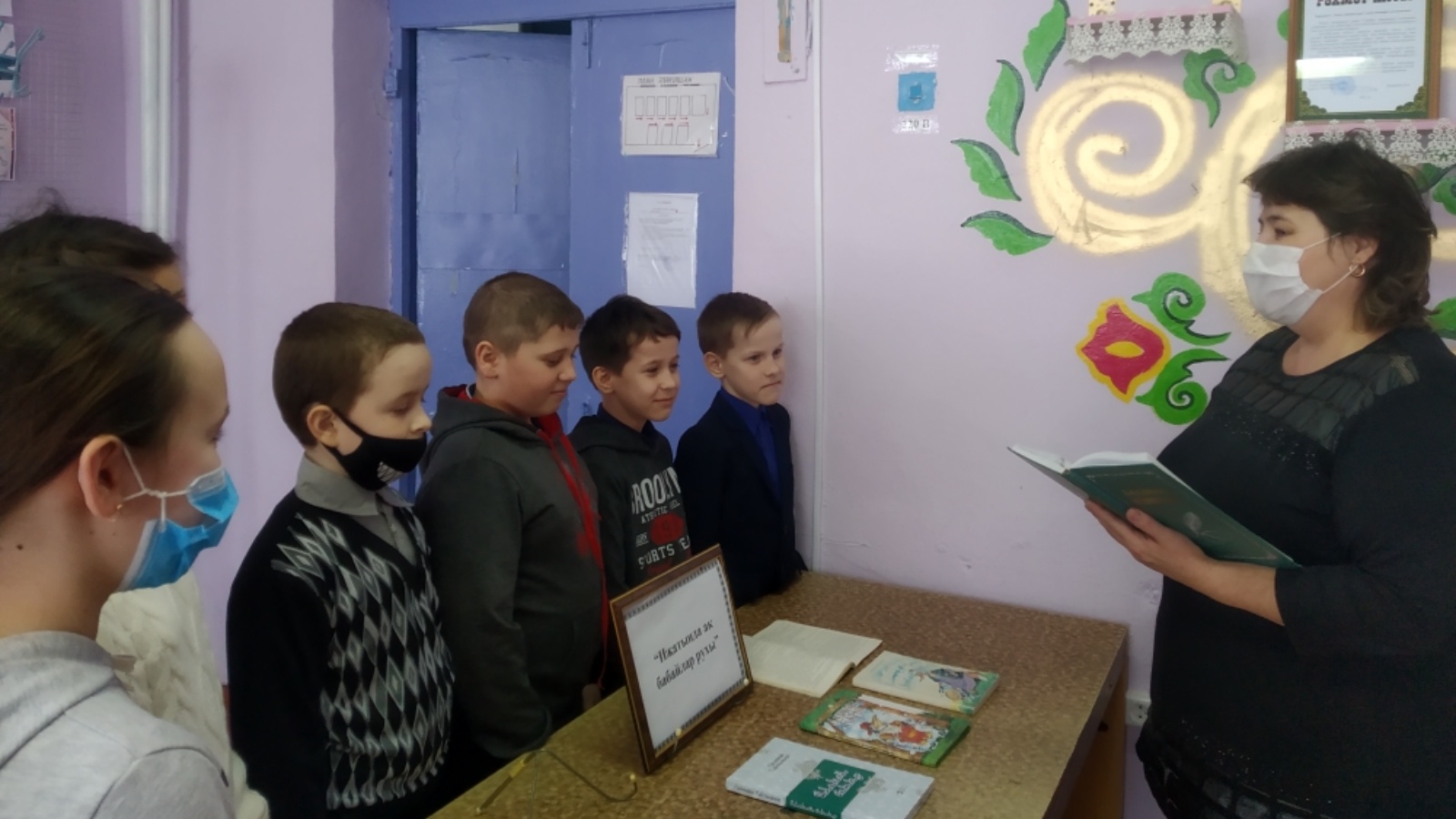В связи с этим библиотекарь Казакларской сельской библиотеки Альбина Рахматуллина для учащихся начальных классов Малокибякозинской основной школы провела обзор его творчества, которое было представлено на книжной выставке под названием “Иҗатында ак бабайлар рухы”. Ребята поближе познакомились с жизнью и творчеством юбиляра, читали вслух стихи и сказки из книг “Алдакчы Тукран”, “Илекәй батыр”.