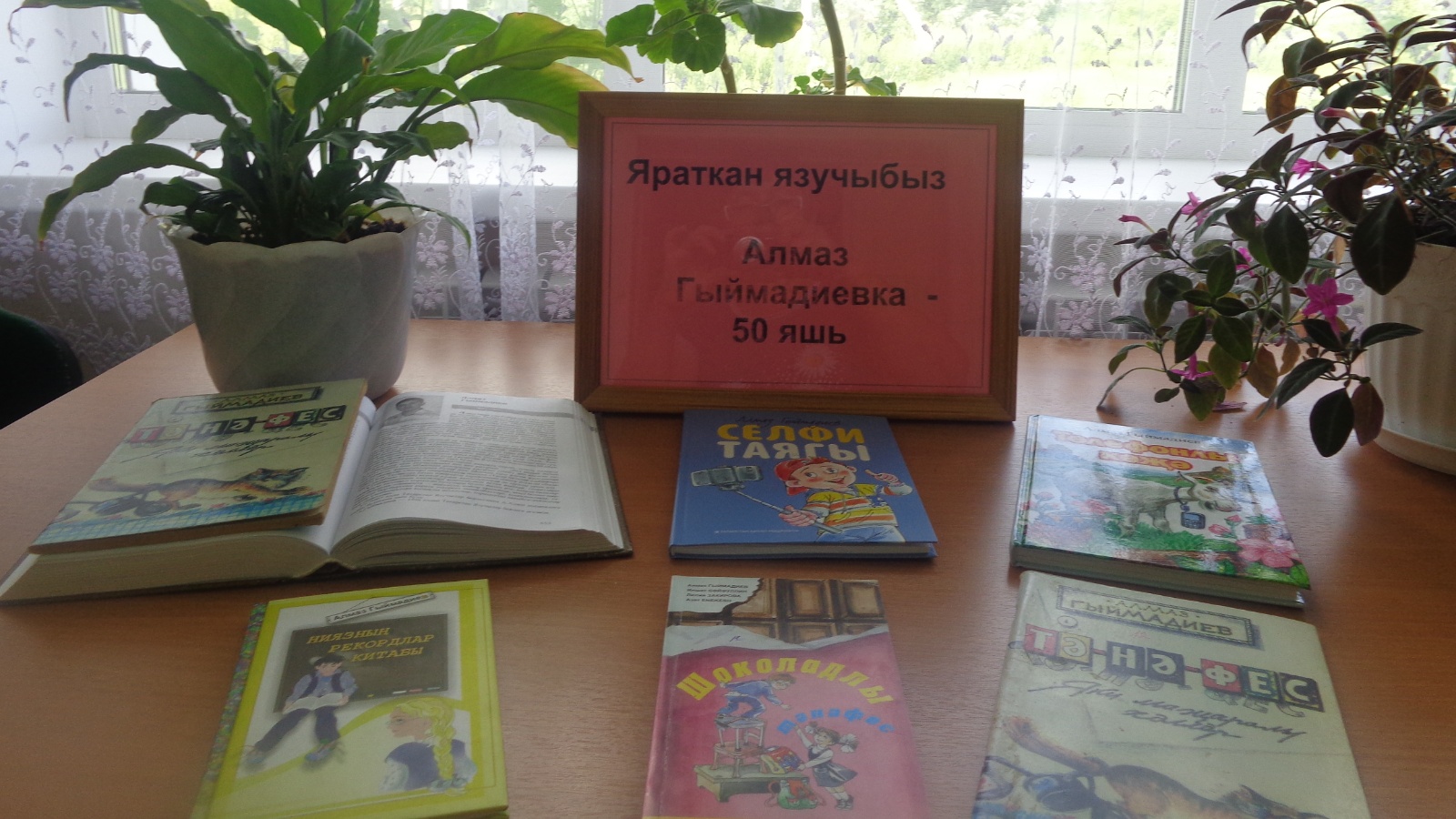 В Саушской сельской библиотеке состоялась книжная выставка “Яраткан язучыбыз”, посвященная 50-летию со дня рождения лауреата литературной премии имени А. Алиша, члена Союза писателей Татарстана Гимадиева Алмаза Марсовича. Дети смогли поближе познакомиться с его жизнью, творчеством.