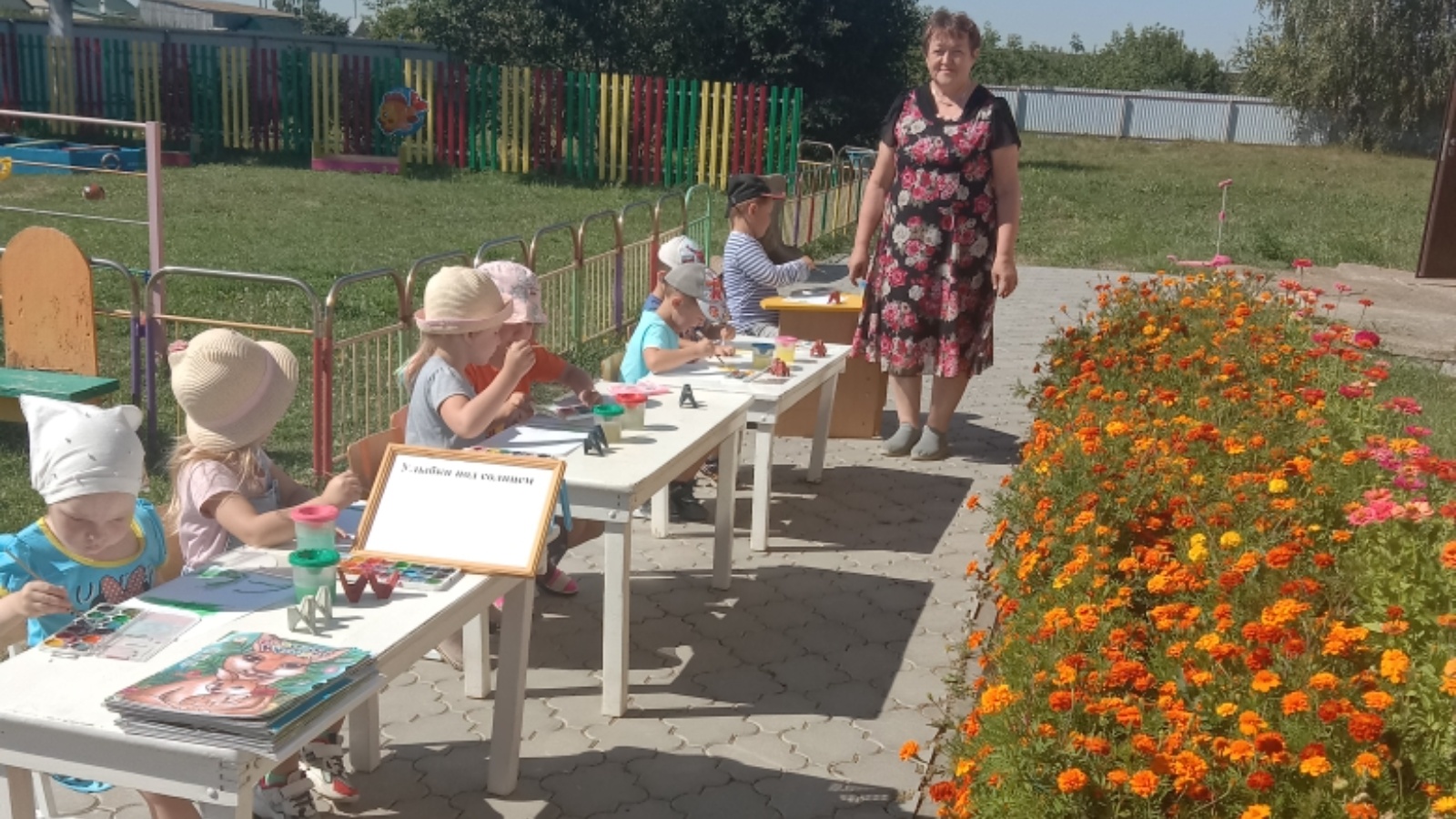 Библиотекарь Узякской сельской библиотеки с юными читателями Узякского детского сада провела конкурсно — игровую программу на тему «Улыбки под солнцем». Юные читатели вместе с библиотекарем отправились в весёлое летнее путешествие. Лето дарит нам целый океан эмоций и впечатлений. Все вокруг цветёт, благоухает и радует глаз. Сначала дети поделились своими впечатлениями о летнем отдыхе, отгадали загадки о природе. Библиотекарь прочитала стихотворения о лете, затем нарисовали лето.