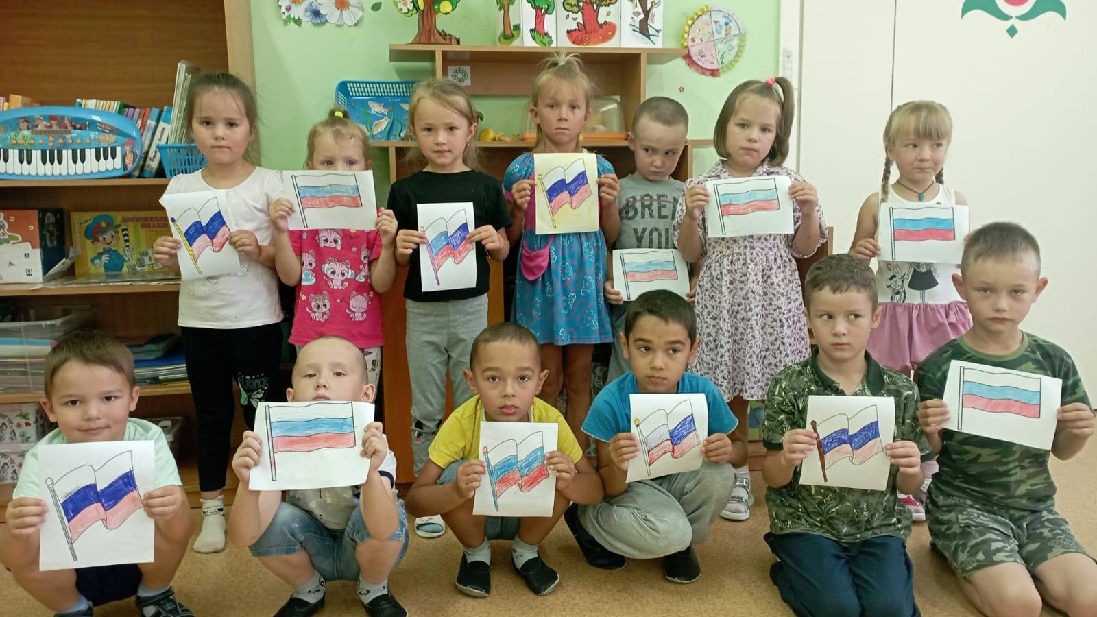 В этот день в детском саду прошло развлекательное мероприятие «День флага», на котором ребята узнали об истории появления Российского флага и его значимости для нашего государства, воспитанники старшей группы изготовили флажки, на прогулке дети играли в игры «Передай флажок», «Собери флаг по цвету».
