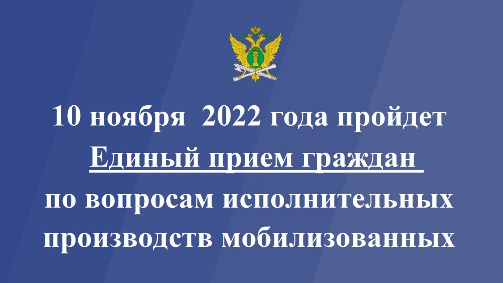 В целях обеспечения прав граждан 10 ноября текущего года в ГУФССП России по Республике Татарстан пройдет Единый прием граждан. Судебные приставы проконсультируют по вопросам, связанных с исполнительными производствами в отношении попадающих под частичную мобилизацию граждан, военнослужащих, участвующих в СВО и их родственников. Прием также будет вестись по обращениям кредиторов, связанных с возвратом просроченной задолженности указанных категорий граждан.