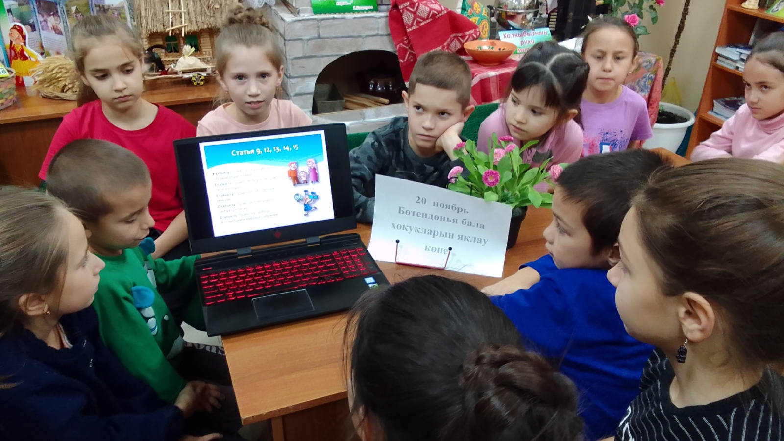 Данный праздник направлен на привлечение внимания к проблемам детей, защиту прав несовершеннолетних и улучшение их уровня жизни. По этому поводу в Баландышской сельской библиотеке совместно с СДК, был проведен правовой час под названием “Балалар хокуклары һәм бурычлары”. Во время мероприятия было рассказано об истории возникновения данного праздника, а также дети ознакомились с их правами и обязанностями.