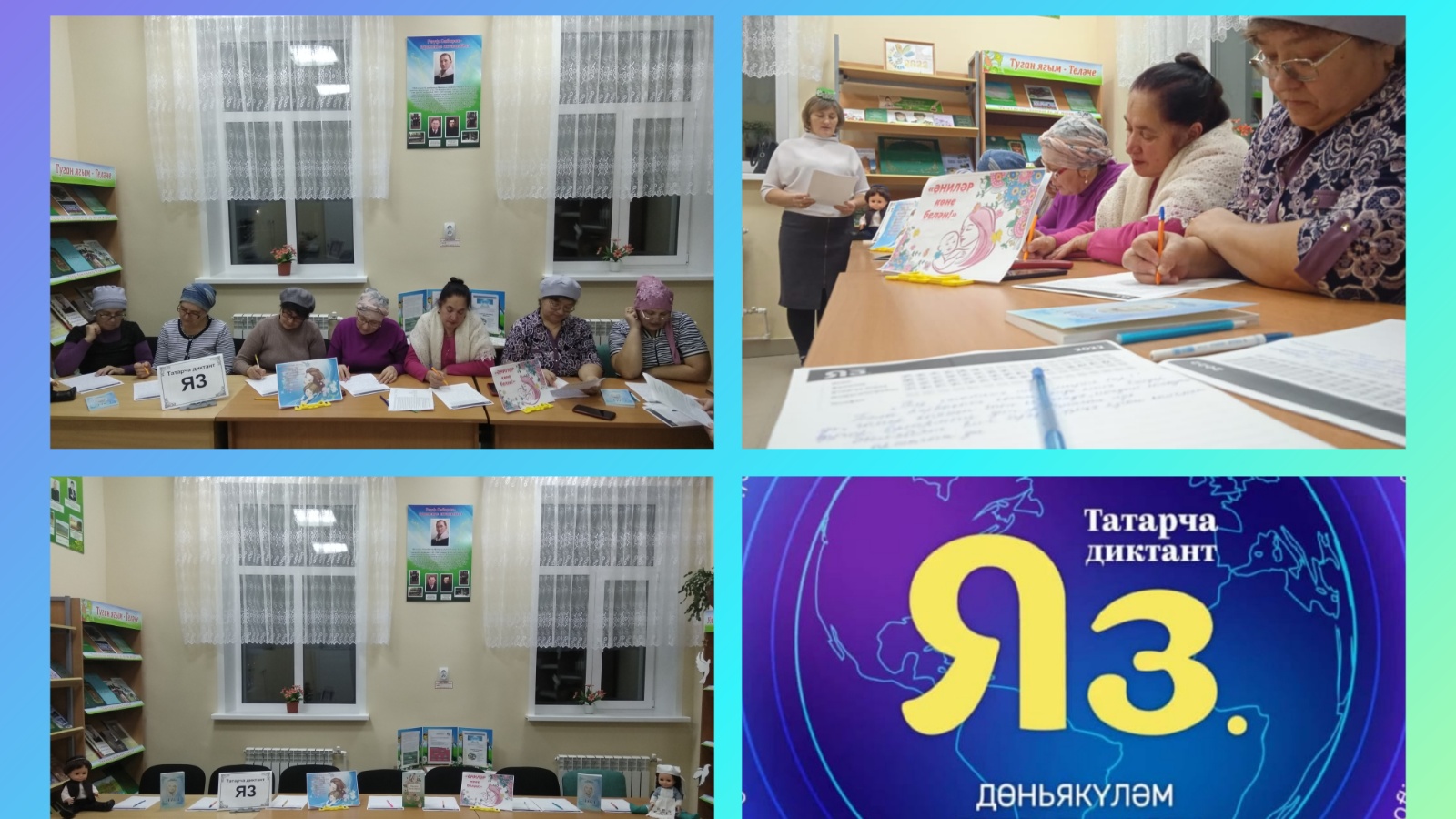 Акция ”Татарча диктант”, направленная на грамотное письмо, знание литературного татарского языка, проверку орфографических и грамматических ошибок. Написать диктант на татарском языке мог любой желающий. Библиотекари Тюлячинского района приняли участие в данной акции. Текстом для диктанта был выбран отрывок из произведения Зульфата Хакима «Бер сәгатьтә ничә мизгел бар?».