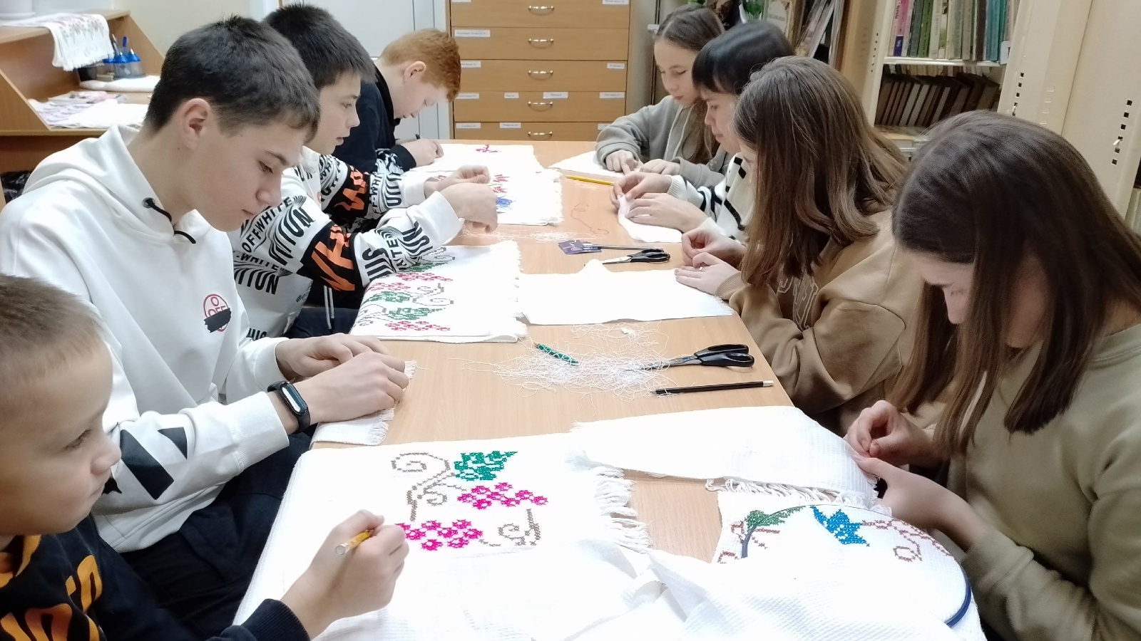 В целях сохранения духовного наследия народа, воспитания любви к национальным украшениям, ознакомления молодежи с историей вышивания для подростков был проведен мастер-класс по вышивке полотенца.