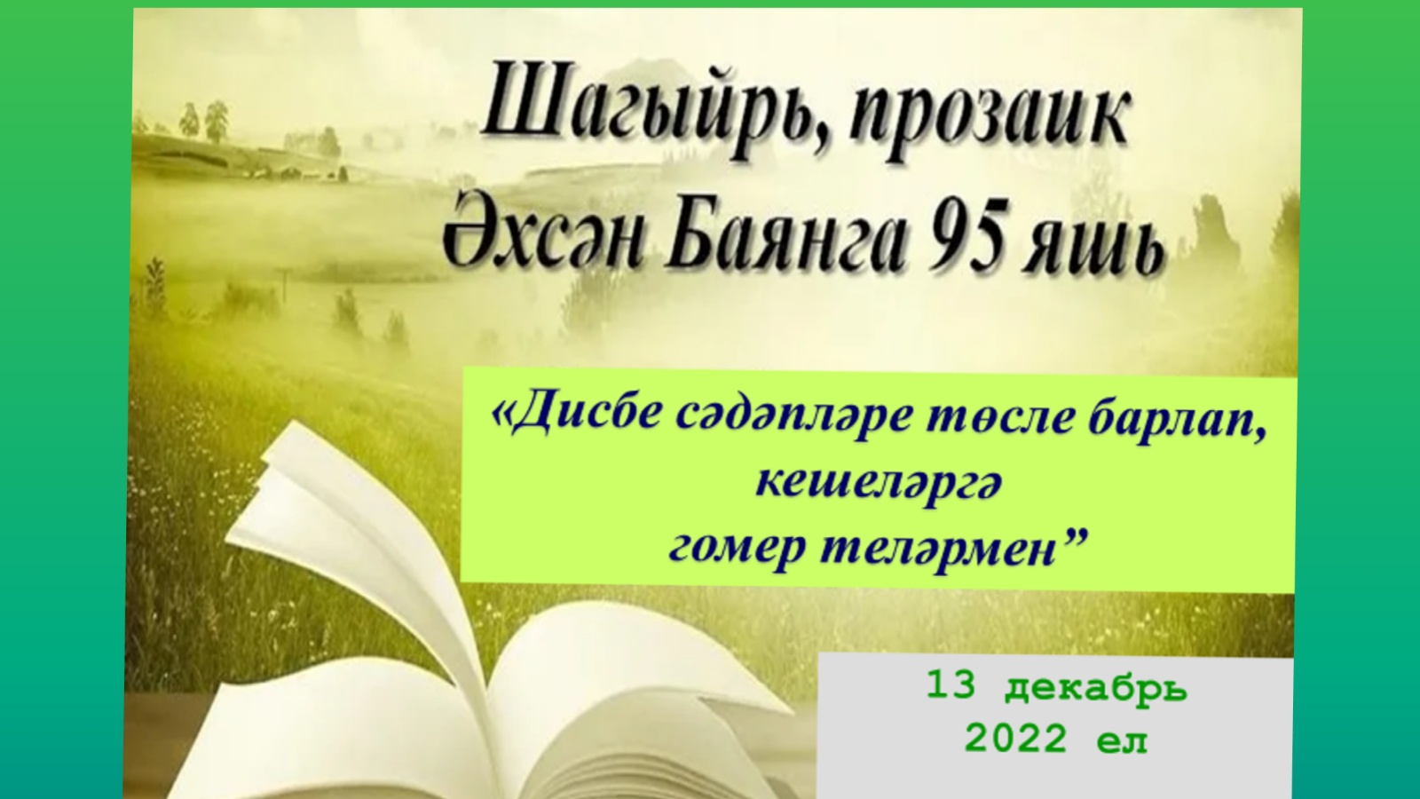 Его творчество занимает достойное место в татарской поэзии второй половины ХХ века. К 95 — летию со дня рождения писателя в Айдаровской сельской библиотеке оформлена книжная выставка «Дисбе сәдәпләре төсле барлап, кешеләргә гомер теләрмен», на которой представлены материалы о жизни и творчестве А.Баяна, его художественные произведения и наиболее известные сборники стихов поэта. А. Баянов в своем творчестве раскрывает характерные черты своего времени, романтические чувства и надежды своих современников.