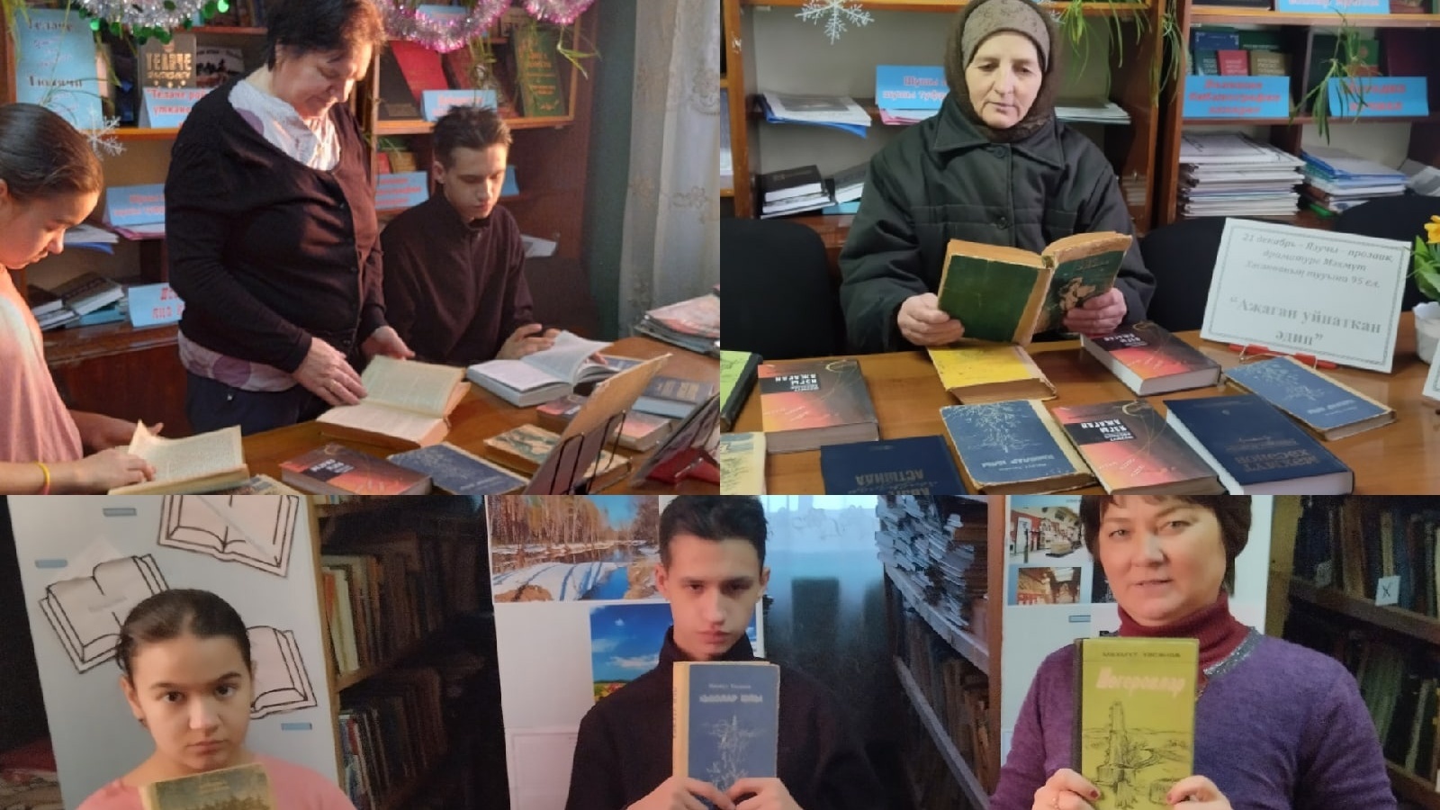 22 декабря в Среднемешинской сельской библиотеке прошел литературный час «Олы әдип – М. Хәсәнов», посвященный 95-летию со дня рождения нашего земляка Махмута Хасанова. Библиотекарь познакомила читателей с жизнью и творчеством М. Хасанова, читатели прочитали юмористические рассказы. Для ознакомления с творчеством писателя была организована книжная выставка “Аҗаган уйнаткан әдип” из имеющихся книг в фонде библиотеки.
