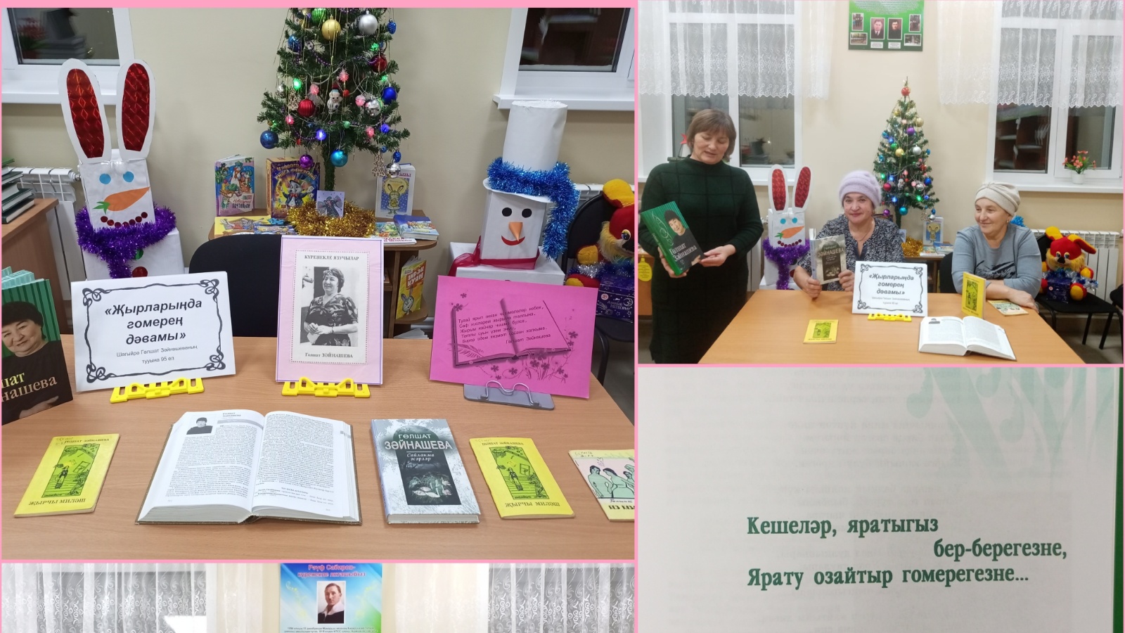 12 января в Айдаровской сельской библиотеке организована книжная выставка и проведено громкое чтение под названием «Җырларыңда гомерең дәвамы”, посвященное 95–летию со дня рождения татарской поэтессы, драматурга, лауреата Государственной премии РТ им.Г.Тукая Гульшат Хисамовны Зайнашевой. Библиотекарь познакомила с жизнью и творчеством поэтессы, присутствующие прочитали ее стихи, прозвучали песни на слова Г.Зайнашевой. Гульшат Зайнашева была также автором киносценариев, очерков и документальных повестей, которые были посвящены творчеству выдающихся деятелей татарской культуры.