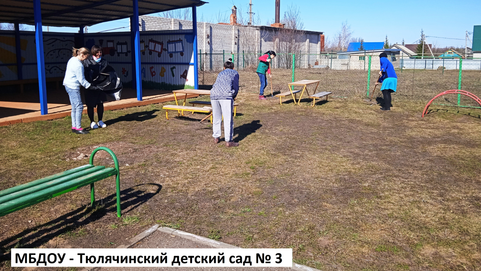 В ходе которого педагоги детского сада провели уборку прогулочных участков.