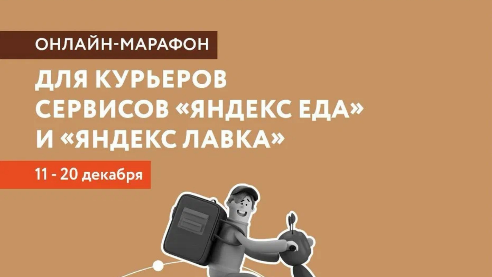 11 декабря Центр «Мой бизнес» Фонда поддержки предпринимательства Республики Татарстан совместно Яндекс запускает первый онлайн-марафон для курьеров, сотрудничающих с сервисами «Яндекс Еда» и «Яндекс Лавка» при поддержке Министерства экономики Республики Татарстан в рамках национального проекта «Малое и среднее предпринимательство».