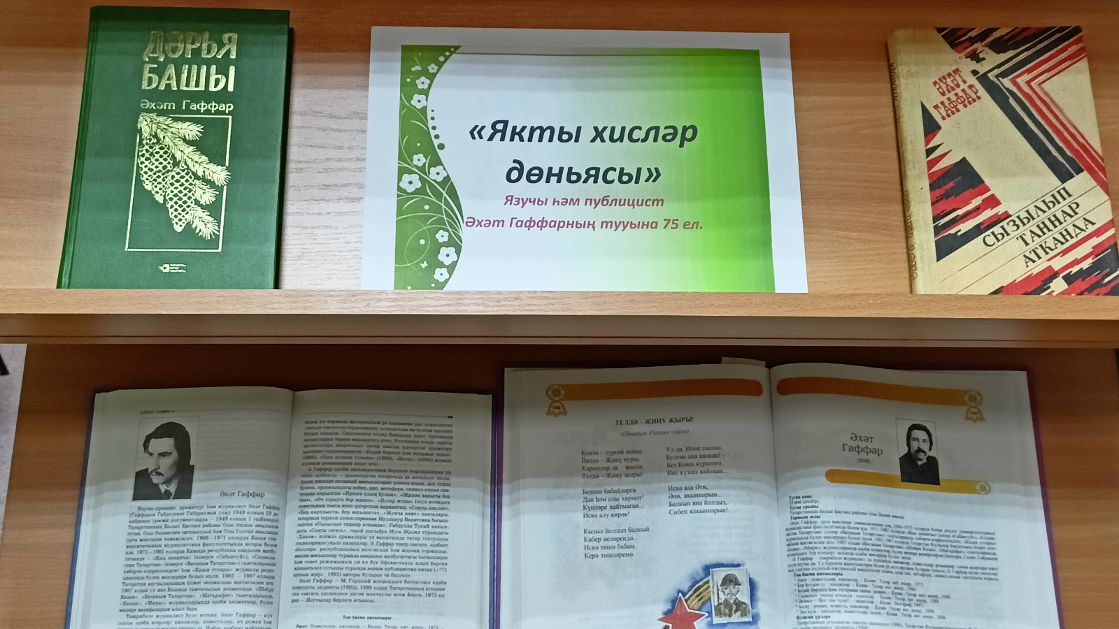 Для читателей Аланской сельской библиотеки была представлена книжная выставка «Якты хисләр дөньясы”, к 75-летию со дня рождения татарского писателя и публициста Ахата Гаффара. Здесь были представлены книги о жизни и творчестве писателя, а также его произведения. Особый интерес вызвали избранные произведения Ахата Гаффара в 4-х томах 2016 года издания.
