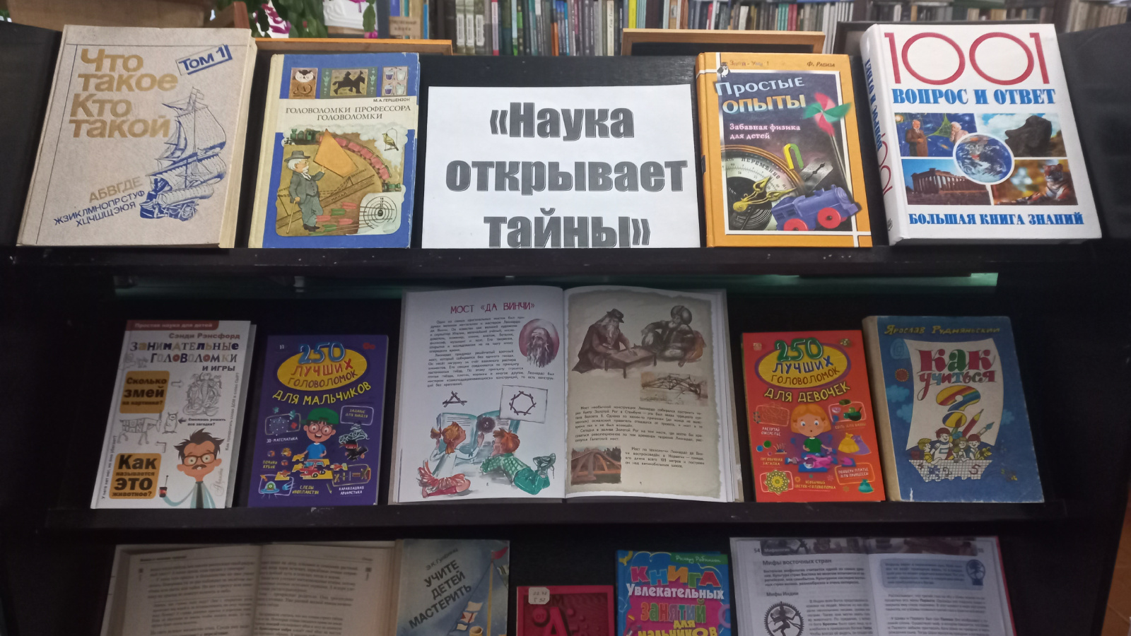 2024 год в Татарстане объявлен Годом научно–технологического развития. Выставка «Наука открывает тайны», демонстрирует комплект энциклопедий и пособий по развитию технологического творчества самой разнообразной тематики. На ней читатели найдут книги о жизни и деятельности великих ученых, об истории открытий и изобретений, об опытах и научных развлечениях. Выставка будет действовать в течение года. Приходите и читайте, открывайте для себя много интересного и познавательного.