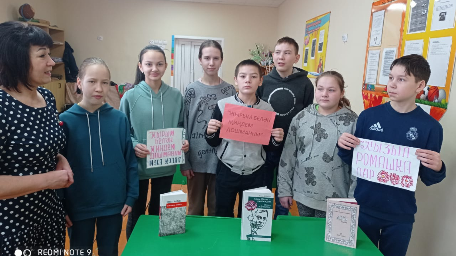 Библиотекарь Верхнекибякозинской сельской библиотеки провела информационный час «Җырым белән җиңдем дошманны”, посвященный 118-летию со дня рождения татарского поэта, Героя Советского Союза Мусы Джалиля. В ходе мероприятия дети узнали об интересных фактах из жизни поэта, его детских и юношеских лет, о его литературной деятельности, о том, как он воевал, попал в плен и о книге автобиографических стихов «Моабитская тетрадь». Произведения “Моабитской тетради” были переведены на многие языки и стали классикой военной поэзии.