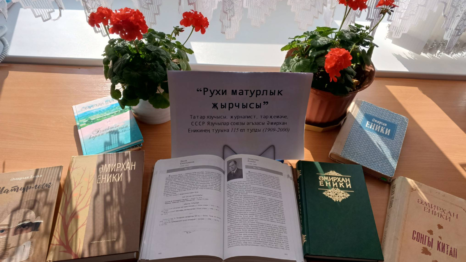 В Тюлячинской центральной библиотеке к 115-летнему юбилею татарского писателя Амирхана Еники подготовлена книжная выставка «Рухи матурлык җырчысы», где представлена биографическая литература о писателе и произведения автора.