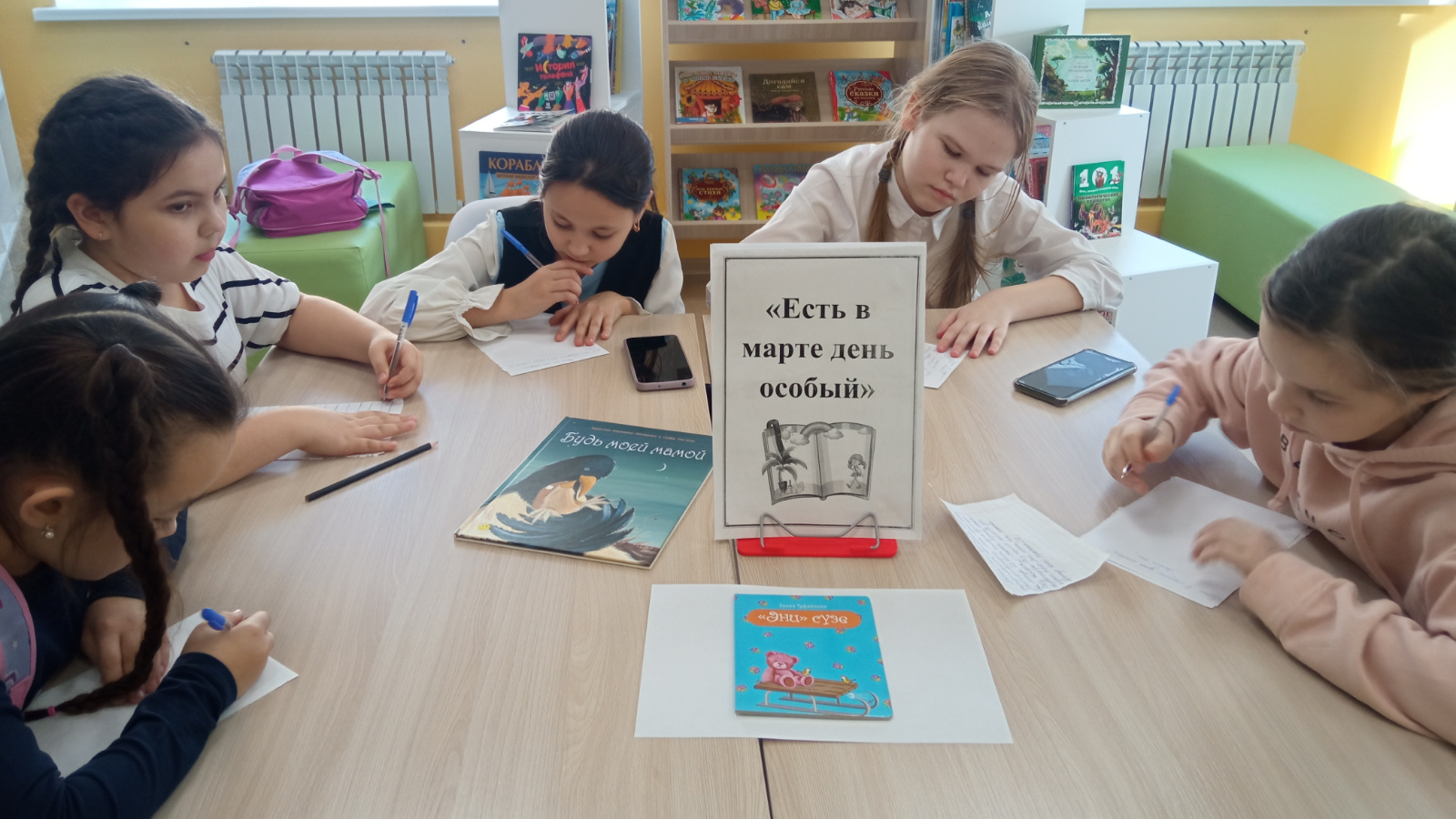 В преддверии самого светлого, доброго праздника, Международного женского дня, в Тюлячинской детской библиотеке прошел конкурс сочинений «Есть в марте день особый». В конкурсе приняли участие учащиеся младшего школьного возраста Тюлячинской средней школы. Отличной мотивацией для написания сочинения является поздравление своих мам с женским праздником 8 Марта. За лучшее сочинение выдали грамоты за первое, второе и третье места, а всех принявших участие ждали совместные фотографии. В дополнение к мероприятию была оформлена книжная выставка, собранная из материалов о выдающихся женщинах мира.