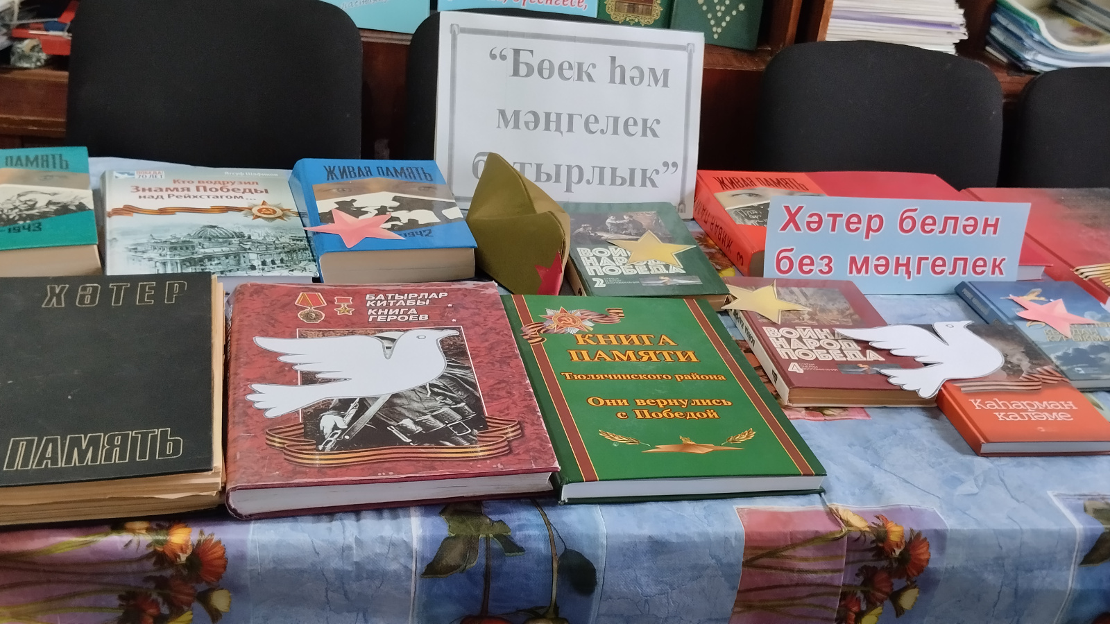 В 2024 году отмечается 79-я годовщина Победы в Великой Отечественной войне. Ко Дню Великой Победы 2 мая в Среднемешинской сельской библиотеке была оформлена книжная выставка «Бөек һәм мәңгелек батырлык». На выставке были представлены исторические и литературные книги на тему войны, находящиеся в фонде библиотеки.