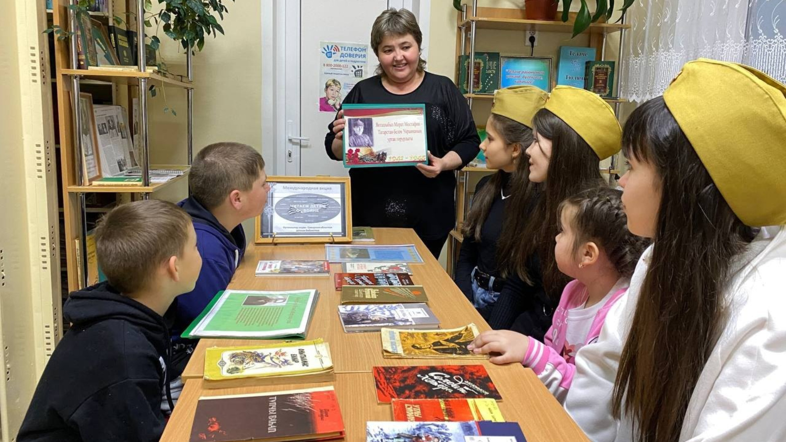 Библиотекарь рассказала о подвигах наших земляков, далее провела обзор книг, которые представлены на книжной выставке "Прочти книгу о войне". Затем были прочитаны вслух лучшие стихотворения о Великой Отечественной войне. Учащиеся познакомились с альбомами, посвященными ветеранам войны и тыла. После почтили память погибших минутой молчания.
