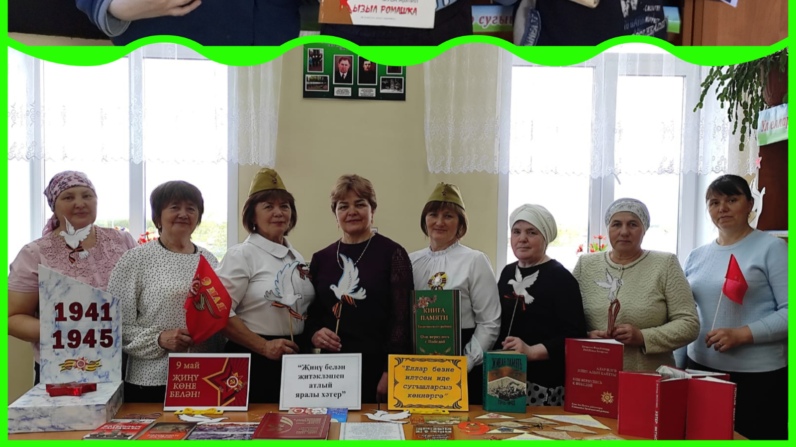 С 7 по 9 мая Айдаровская сельская библиотека организовала для читателей выставку-экспозицию под названием “Җиңү белән җитәкләшеп атлый яралы хәтер”. На выставке представлены литературные произведения о событиях, подвигах, историях минувшей войны, тематические поделки, выполненные из различных материалов.