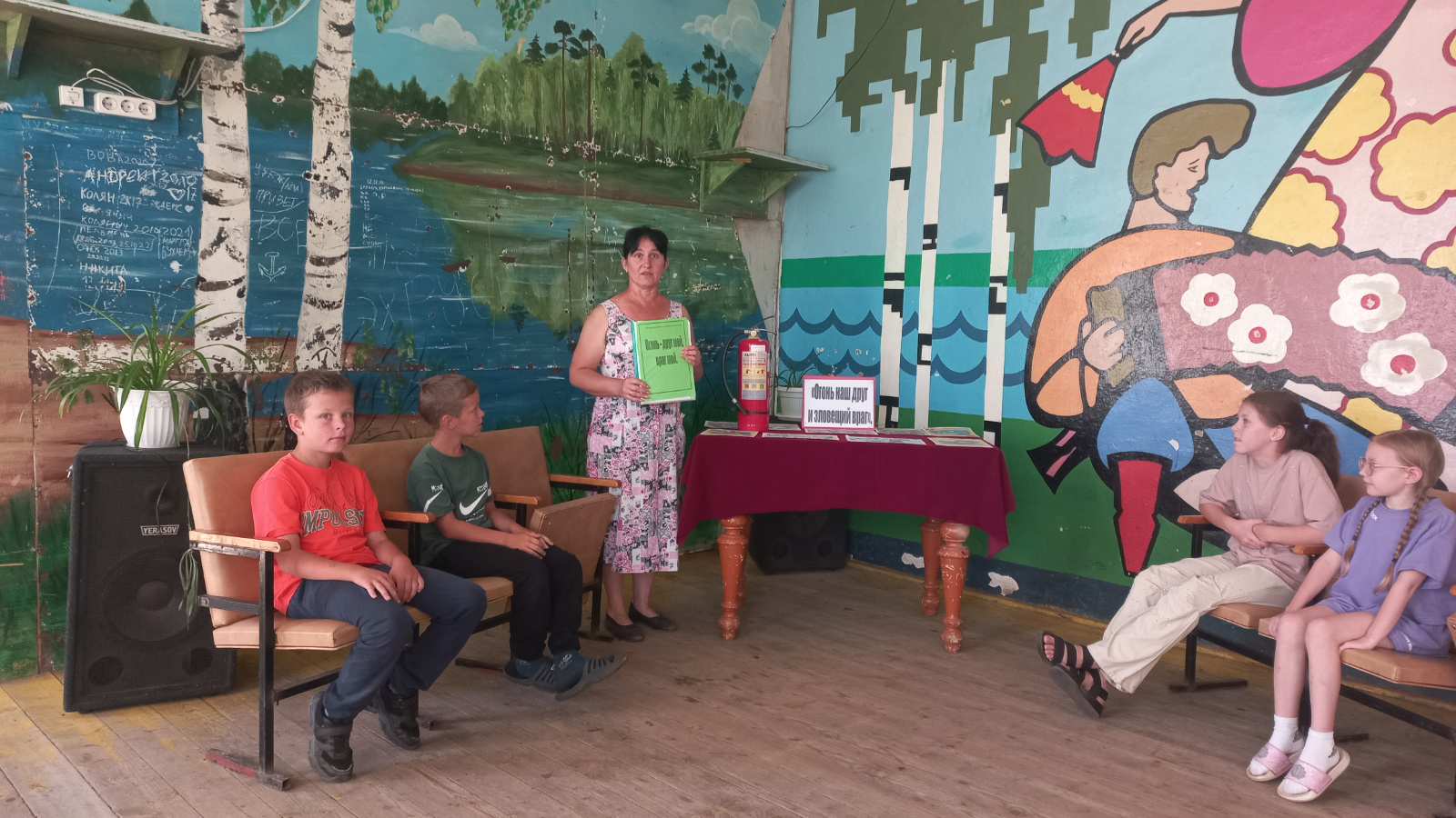 Библиотекарь, применяя игровые ситуации, познакомила ребят с основными причинами пожаров, с первичными средствами пожаротушения, обучила правилам пожарной безопасности и рассказала о правилах действиям при возникновении пожара. Беседа проходила у выставки «Огонь наш друг и зловещий враг». После прочтения произведения «Кошкин дом» ребята сделали выводы из изученного материала, ответили на итоговые вопросы викторины «Что делать и как себя вести, если случился пожар».
