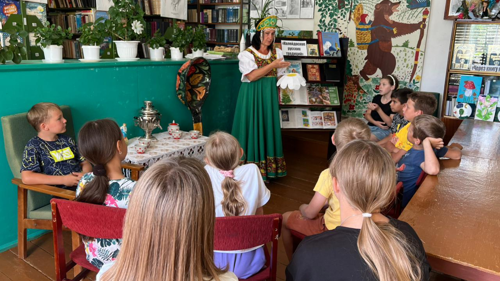 Каждое общество имеет свою культуру. Культура входит в нашу жизнь с самого рождения. 24 июля библиотекарь Шармашинской сельской библиотеки провела час русского фольклора «Мир дому твоему: традиции и обычаи русского народа», где познакомила с историей, традициями и праздниками русского народа, национальной культурой, с русским фольклором. Поговорили о проведении свадеб, крещения и больших праздников, таких как Рождество, Масленица, Пасха. Также ребята узнали, как была устроена русская изба, какую одежду носили, какие традиционные блюда готовили наши предки и какие блюда дошли до наших дней. Затем библиотекарь рассказала о русских народных играх и о хороводах. В завершении мероприятия поиграли в игры «Колечко, колечко выйди на крылечко», «Ручеек». Напоследок ребята оставили свои пожелания библиотеке, написав их ла лепестках ромашки. К мероприятию была подготовлена выставка «Калейдоскоп русских традиций».