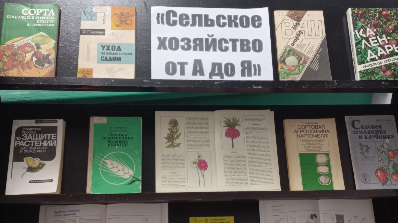 В Шармашинской сельской библиотеке подготовлена книжно-иллюстративная выставка «Сельское хозяйство от А до Я». На выставке была представлена литература по приусадебному хозяйству, овощеводству, а также книги с рецептами. Каждый желающий мог взять книгу об интересующей его культуре, чтобы вырастить и получить прекрасный урожай.