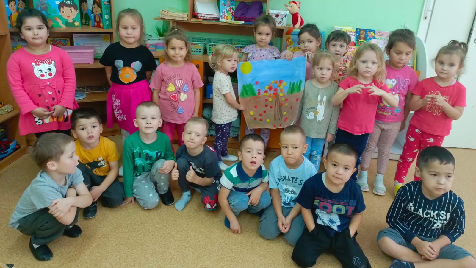 Сегодня на занятии по развитию речи воспитатель средней группы Хафизова А. Р., прочитав с детьми стихотворение Л. Лерона "Праздник листьев", сделали итоговую коллективную работу.