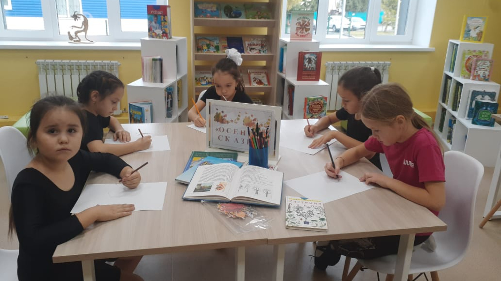 24 октября в Тюлячинской детской библиотеке прошел мастер – класс «Осенняя сказка», на котором юные читатели вырезали листья, наклеивая их на нарисованные ими макеты деревьев, растущих в нашей республике.