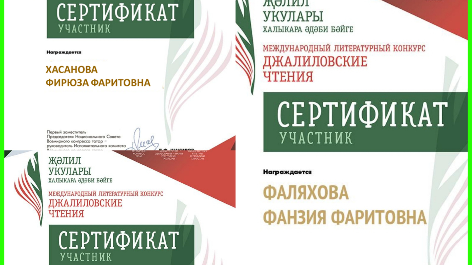 Всемирный конгресс татар совместно с Министерством культуры, образования и науки Республики Татарстан организует VII Международный литературный конкурс «Джалиловские чтения». Конкурс проводится с целью речевого развития и формирования интереса к художественному слову, развития умения чувствовать красоту и выразительность поэтического слова. В этом конкурсе в номинации «Джалиль на татарском языке» приняли участие Ильзира Фаттахова, Фирюза Хасанова, Фанзия Фаляхова– члены из клуба “Матур сүз” Айдаровской сельской библиотеки и получили сертификат.