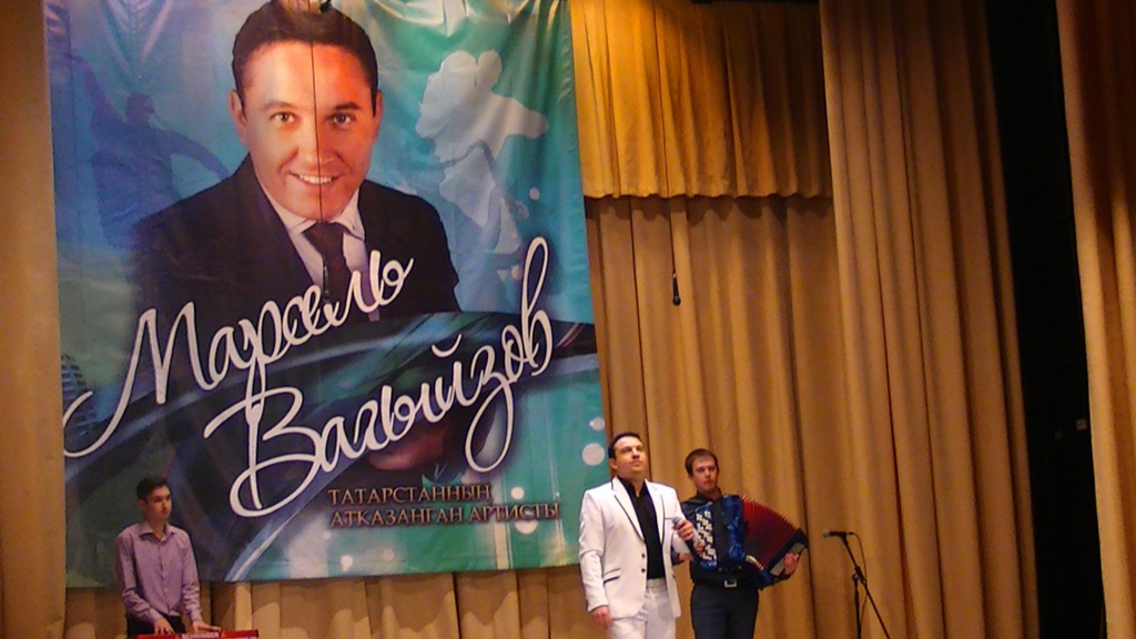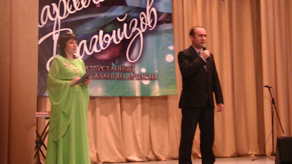 ведущего концертной программы актёра Рашита Сабирова, баяниста Айнура Муратова, певицы Рузалии Хайретдиновой, наших земляков Марселя Вагыйзова и Инсафа Бадрутдинова.
