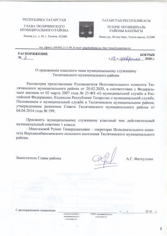 Рассмотрев представления Руководителя Исполнительного комитета района от 20.02.2020, в соответствии с Федеральным законом от 02 марта 2007 года № 25-ФЗ «О муниципальной службе в Российской Федерации», Кодексом Республики Татарстан о муниципальной службе, Положением о муниципальной службе в Тюлячинском муниципальном районе, утвержденным решением Совета Тюлячинского муниципального района от 04.04.2014 года № 199,
