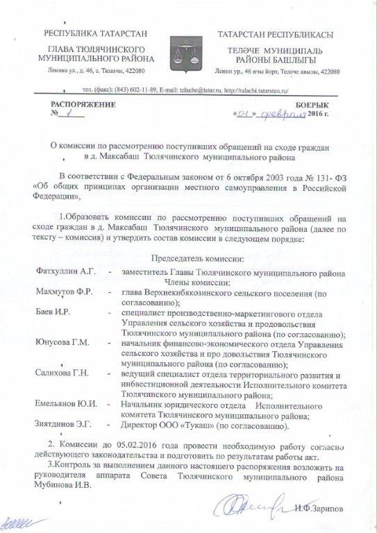 Распоряжение № 7 от 26.02.2016г. Об утверждении структуры системы оповещения в ТМР