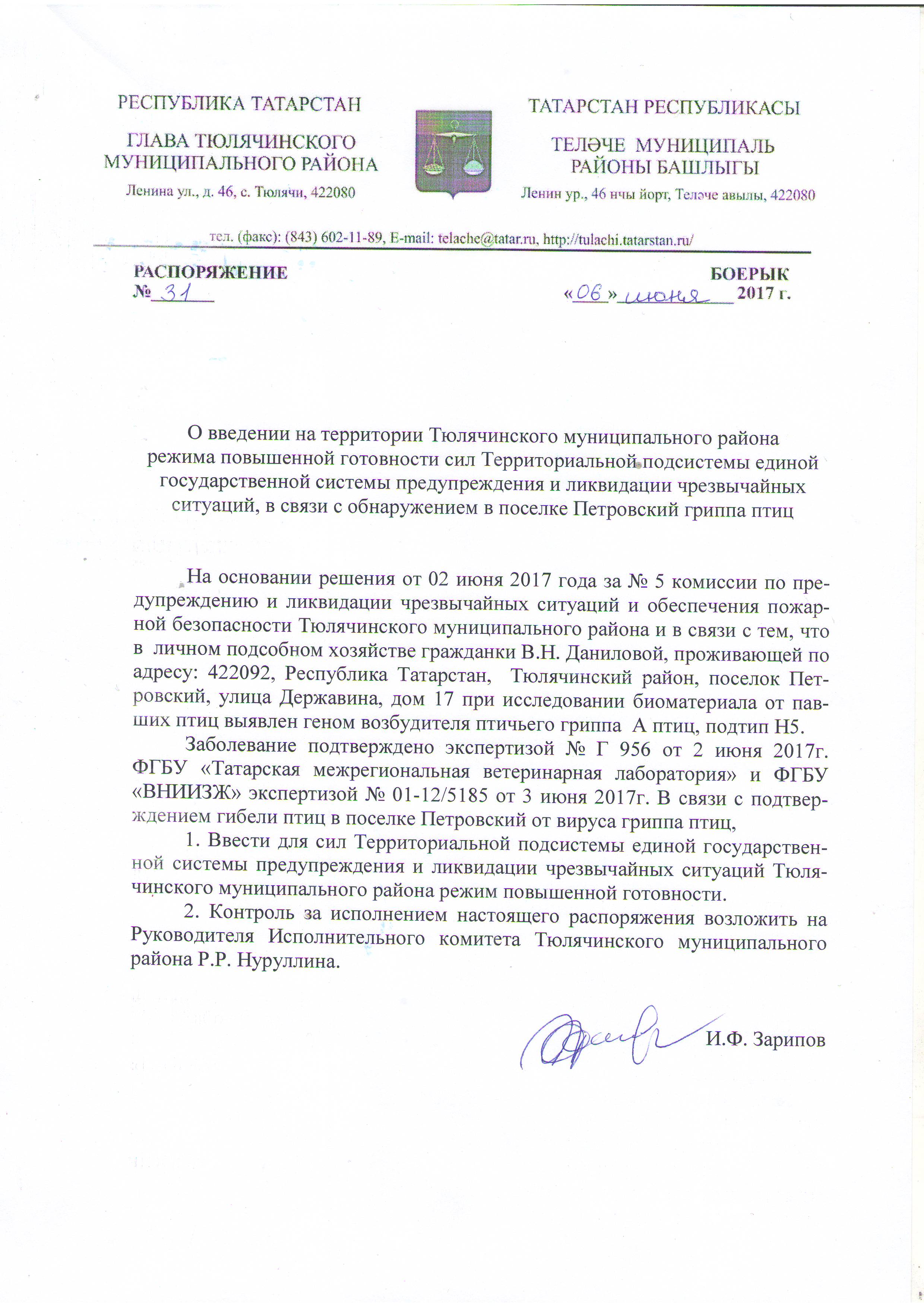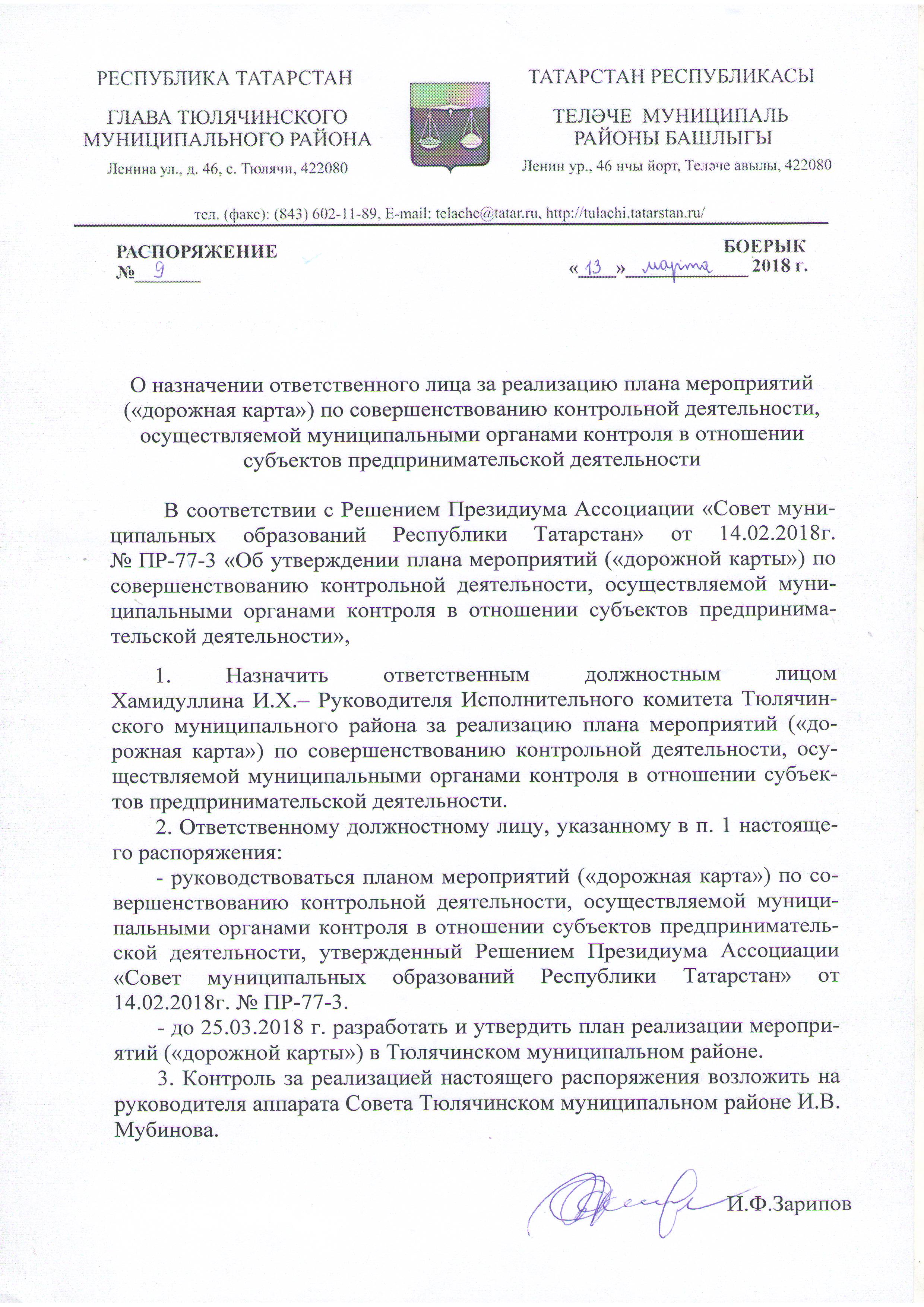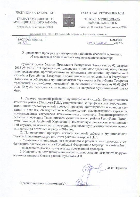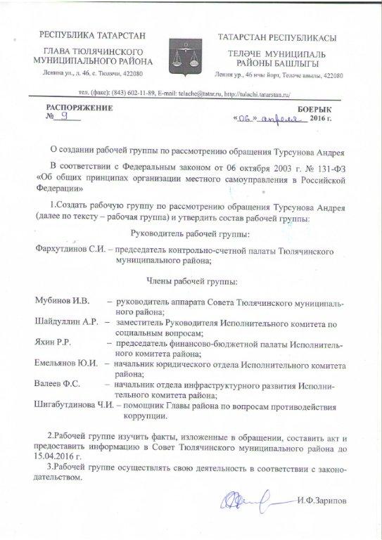 Распоряжение № 16 от 07.04.2017г. О реализации в ТМР распоряжения КМ РТ от 21.03.2017г. № 515-р