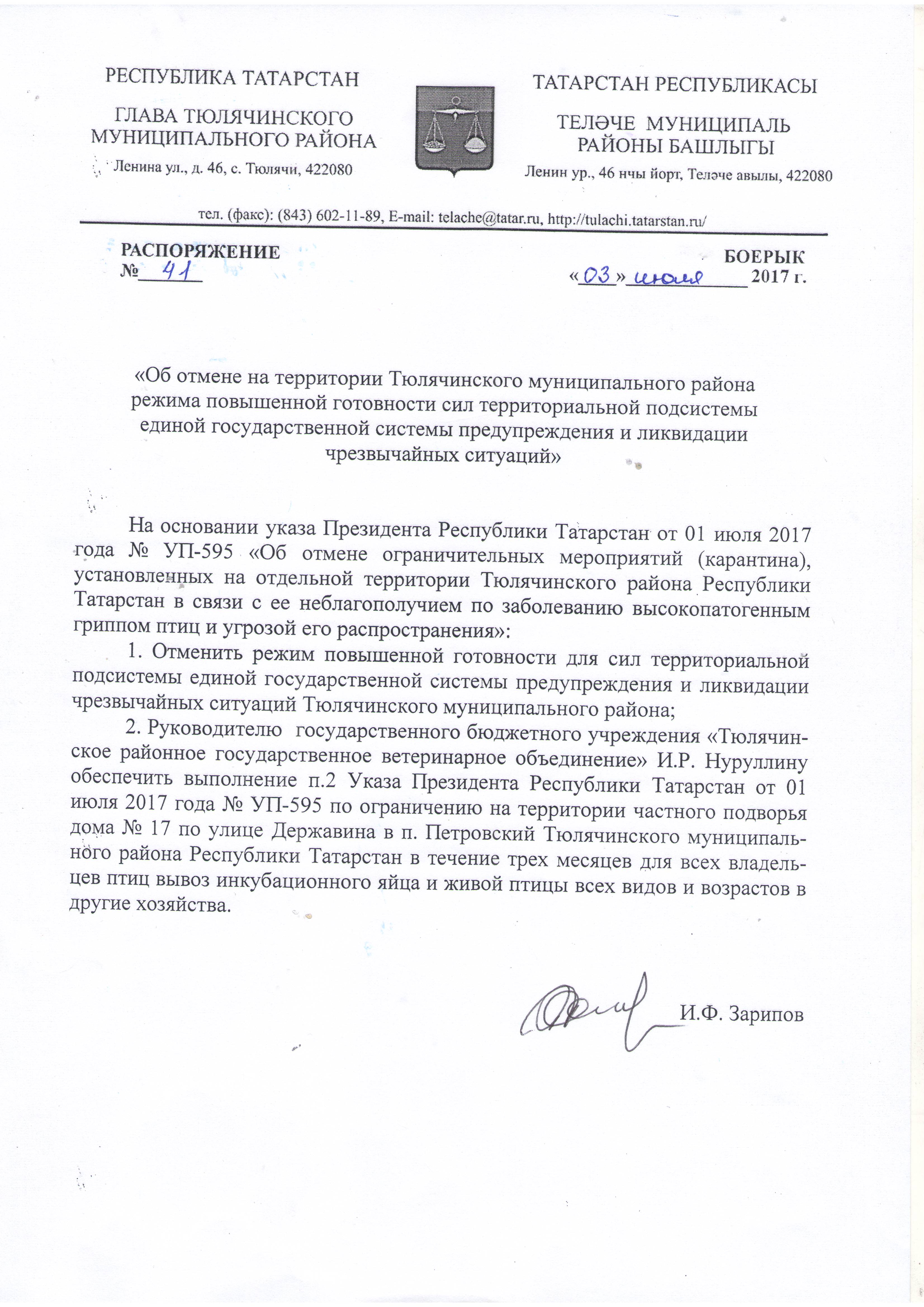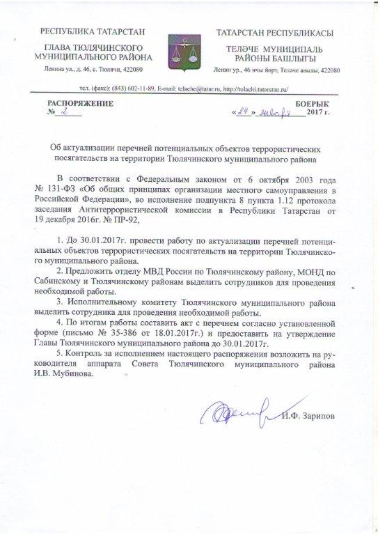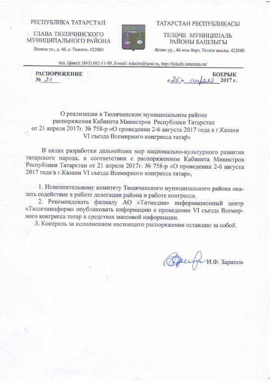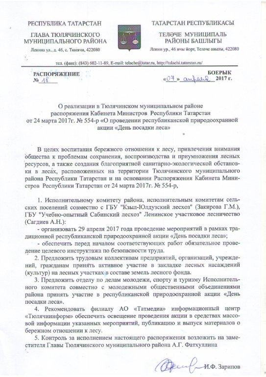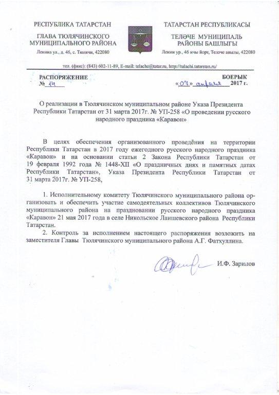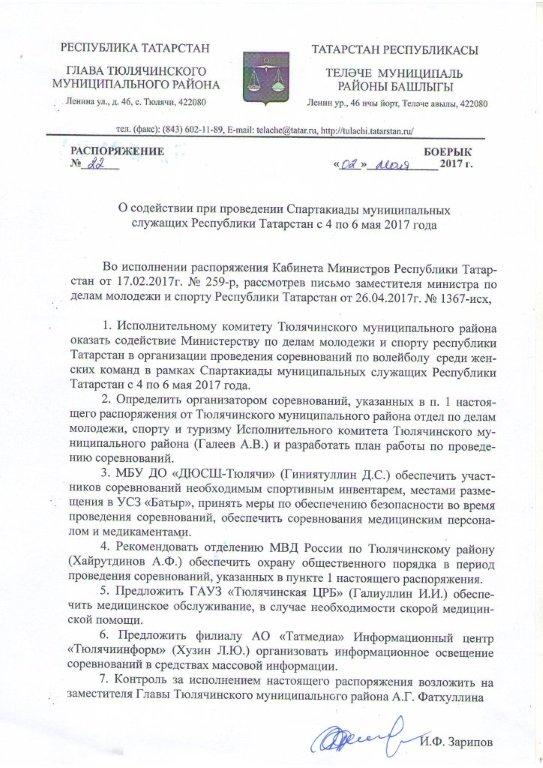 Распоряжение № 17 от 07.04.2017г. О реализации распоряжения КМ РТ от 17.02.2017г. 259-р