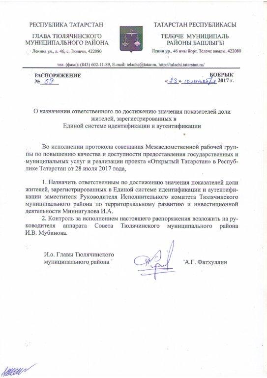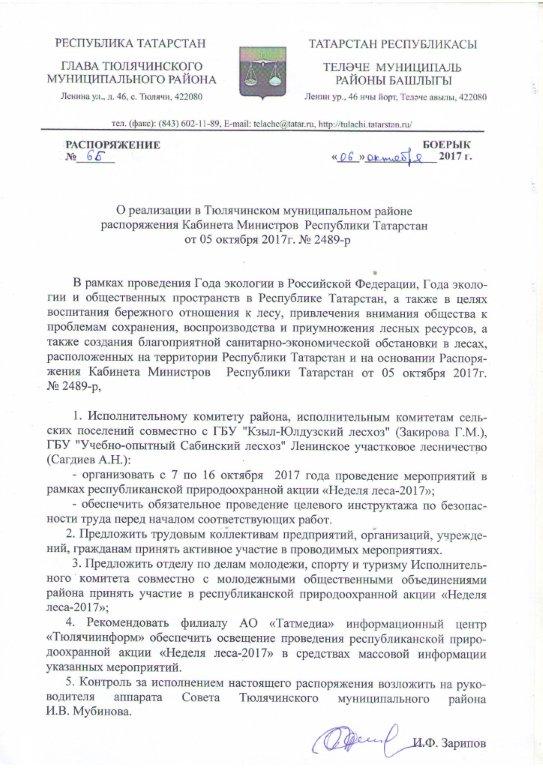 Распоряжение № 66 от 06.10.2017г. О реализации в ТМР распоряжения КМ РТ от 05.10.2017г.