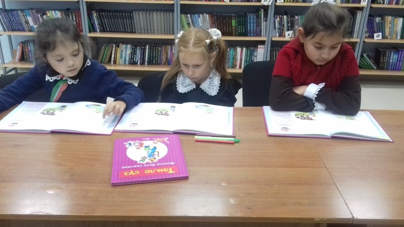 Китапханәче Гильмутдинова Р. “Тәмле сүз” китабы белән таныштырып, шигырьләр, хикәяләр аша әдәплелек, шәфкатьлелек турында сөйләп үтте. Балаларга дәрестә, урамда, өстәл янында, җәмәгать урыннарында үз-үзеңне тоту кагыйдәләрен аңлатты.