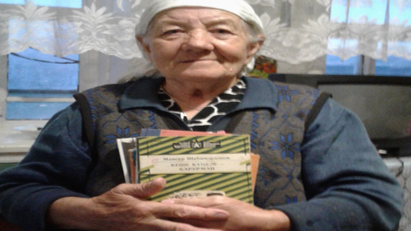 Ул һәр даими китапларны яратып укып баручы Елезарова Мария апа. Узенең сәламәтлеге бик нык булмасада , ул шушы 3 кварталның иң күп китап укучысы. Һәм китапханәче аның хәлен белергә барып,тагын китаплар алып килде.