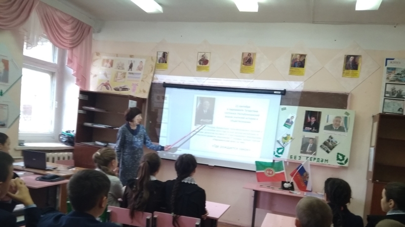 Бүген КечеКибәхуҗа төп мәктәбендә тарих укытучысы Асманова Т.М. «Парламент, җәмгыять һәм мин” дигән темага Парламент дәресе үткәрде. Ул укучыларга презентация ярдәмендә республикабызның законнар чыгаручы органнары , аларның бурычлары, яшь буыннын иҗтимагый- сәяси эшчәнлектә катнаша алу мөмкинлеге, кеше тормышында законнарның роле белән таныштырды. Яшь буын үзенең хокукларын һәм бурычларын белергә тиешлеген аңлатты.