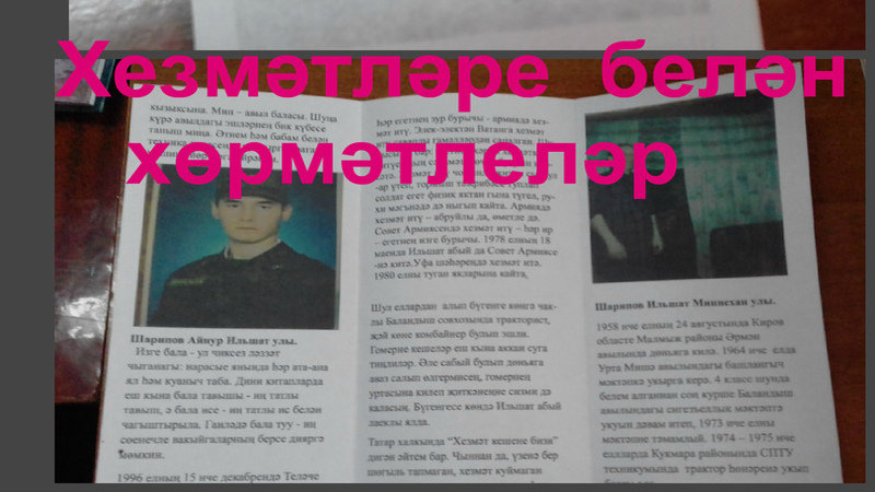 Әлеге буклет игеннәрне урып – җыюны башыннан алып ахырына кадәр башкарган, алдынгы комбайнерлар, аталы – уллы Шариповлар гаиләсенә багышланды.