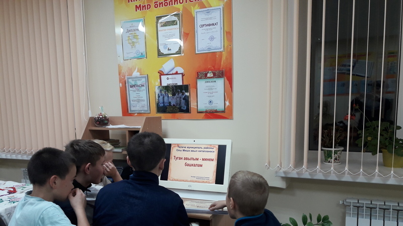 Бу әңгәмә китапханәче Газизова Р.Ш. ның эзләнү-тикшеренү эше буенча эшләнгән “Туган авылым – минем башкалам” исемле презентациясе нигезендә алып барылды.