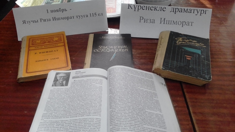 Шул датага багышлап Урта Мишә авыл китапханәсендә “Күренекле драматург Риза Ишморат” исемле китап күргәзмәсе куелды. Риза Ишморат – җитмеш елга якын иҗат гомерен халкына багышлаган фидакарь әдипләребезнең берсе. Әдәбият-сәнгатьнең ул төрле өлкәләрендә үзен талантлы оештыручы, җитәкче һәм үзенчәлекле каләм иясе – драматург, прозаик һәм публицист итеп таныта.