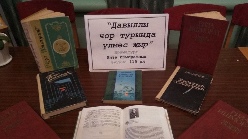 1 ноябрь көнне, татар драматургы, җәмәгать эшлеклесе Риза Ишморатның тууына 115 ел тулу уңаеннан, Айдар авылы китапханәсендә «Давыллы чор турында үлмәс җыр» дип исемләнгән китап күргәзмәсе ачылды.