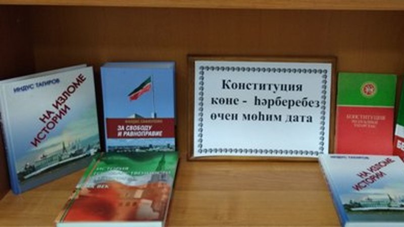 Күргәзмә Татарстан Республикасы көне уңаеннан эшләп куелды. Күргәзмәгә И.Таһиров, Ф.Сафиуллин китаплары куелды.