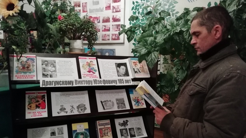 30 ноябрь көнне Шармыш авыл китапханәсендә балалар язучысы Виктор Драгунскийның тууына 105 ел тулу уңаеннан, «Драгунский Виктор Юзефович 105 ел» дип исемләнгән күргәзмә - викторина әзерләнде. Язучы турында биографик мәгълүматлардан тыш, анда фото-материаллар да тәкъдим ителде (язучының үзе һәм аның балалар яшендә ясаган рәсемнәре). Шулай ук күргәзмәдә язучының хикәяләре буенча викторина тәкъдим ителде, анда балалар катнашты. Әлбәттә, күргәзмәнең төп өлешен балаларда гына түгел, әти-әниләрдә дә аеруча популяр булган язучы китаплары алды.