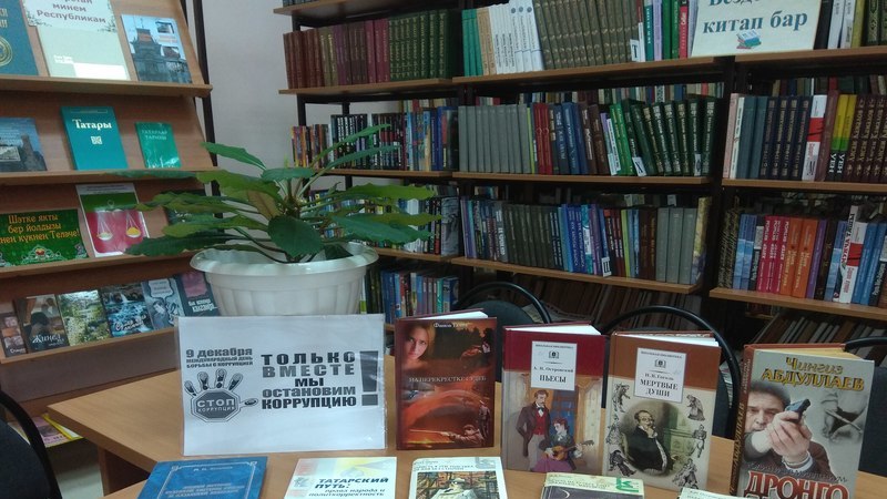 Шул уңайдан, 8 декабрь көнне Шәтке авылы китапханәсендә “Только вместе мы остановим корруцию» дигән күргәзмә эшли башлады. Китап укучыларга коррупциягә каршы хөкүмәт политикасы турындагы материаллар куелды. Шулай ук бөек рус классик язучыларының ришвәтчелек, казна басучылар турындагы әдәби әсәрләре куелды. Коррупциягә каршы буклетлар ясалды.