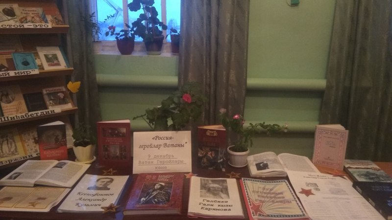 Ватан Геройлары көне - безнең өчен мөһим истәлекле дата, ул тарихи традицияләрне дәвам итү һәм илебез геройлары тарафыннан нинди батырлыклар эшләнүе турында хәтерне саклау булып тора. 9 декабрьдә без каһарман ата-бабаларыбызны искә алып кына калмыйбыз, хәзерге вакытта исән булган Советлар Союзы Геройларын, Россия Федерациясе Геройларын, Изге Георгий ордены һәм Дан ордены кавалерларын хөрмәтлибез. 7 декабрь көнне, әлеге дата уңаеннан, Айдар авылы китапханәсендә киң даирә укучылар өчен «Россия-геройлар Ватаны» дип исемләнгән китап күргәзмәсе оештырылды. Күргәзмә өчен кешелекнең батырлыгын, намусын, кыюлыгын, каһарманлыгын чагылдыручы әдәбият сайланды. Күргәзмәдән укучылар районыбыз үсешенә шактый хезмәт куйган күренекле шәхесләр турында да беләчәкләр. Китапханә укучыларын һәм илебезнең героик үткәне белән кызыксынучыларны әлеге күргәзмә белән танышырга чакырабыз.