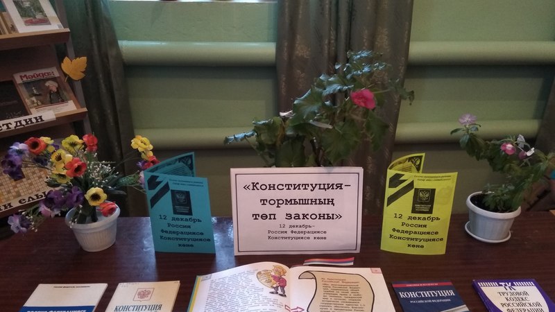 РФ Конституциясе көне уңаеннан Айдар авылы китапханәсендә китап укучылар игътибарына "Конституция-тормышның төп законы"дип исемләнгән китап күргәзмәсе оештырылды. Күргәзмәдә РФ Конституциясе тексты, шулай ук Россиянең дәүләт символикасына һәм Конституцияне булдыру тарихына багышланган китаплар тәкъдим ителде. Китапханәгә килгәч, «Россия Федерацисе конституциясенә 25 ел» дигән презентация карарга һәм викторина сорауларына җавап бирергә була.