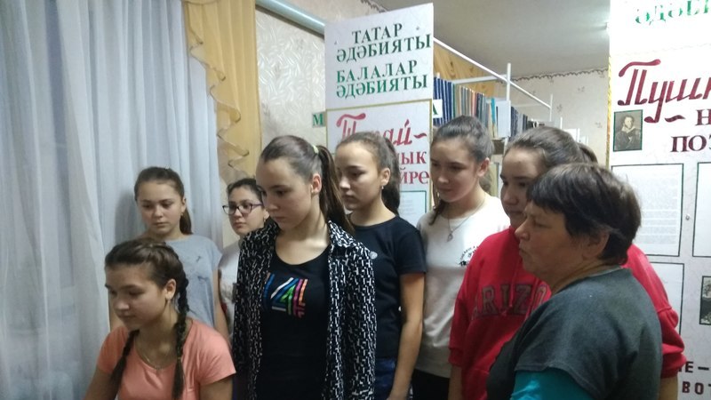 Китапханәче укучыларга кыскача бу көн турында аңлатып үтте. Аннары алар Татарстан республикасының төрле төр геройлары белән таныштырылдылар. Бу чара мәдәният йорты белән берлектә үткәрелде.
