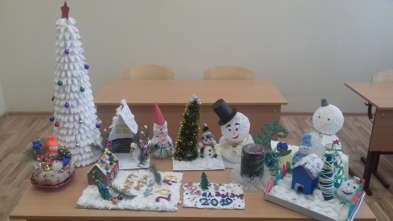Әти-әниләр һәм укучылар конкурста бик теләп катнаштылар. Бу эшләрдән мәктәптә күргәзмә оештырылды. Күргәзмә бөтен кешегә Яна ел рухы остәде.
