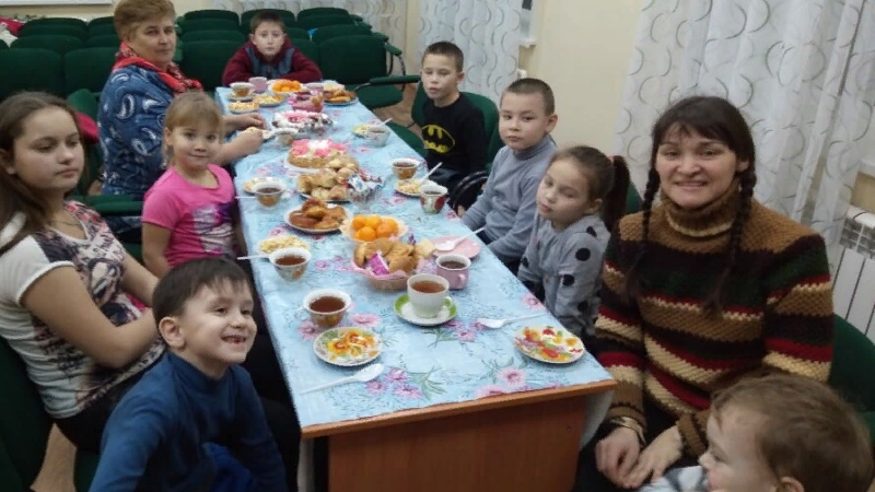 Әңгәмә уздырдылар, бер ел элек булган бу көнне искә төшерделәр. Балаларны чәй һәм төрле тәм-томнар белән сыйладылар, барысы да бик шат булды.