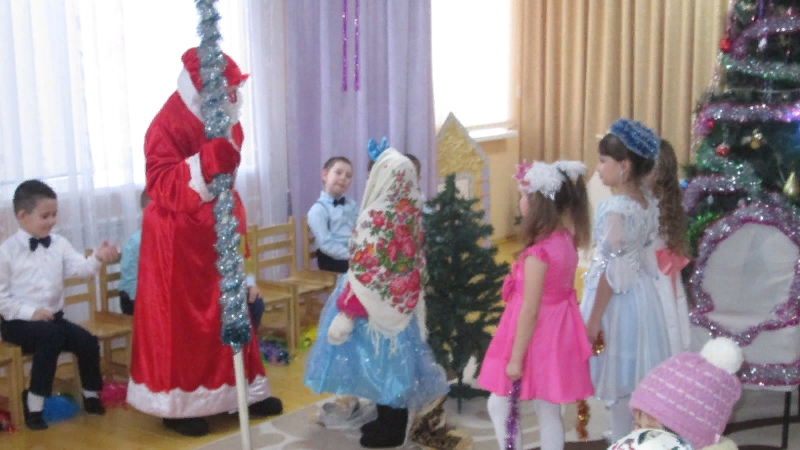 тамаша барышында килгән әкият геройлары Кар бабай, Леший, Маша һәм Аю балаларны тылсымлы дөньяга алып керделәр, алар белән шаярдылар, уеннар уйнадылар. Кыш Бабай һәм Кар кызы килү белән чыршы тирәсендә җырлар һәм биюләр, әйлән-бәйлән белән чын бәйрәм башланды. Тамашадан соң барлык балалар да Кыш бабайдан күптән көтелгән бүләкләр алдылар.