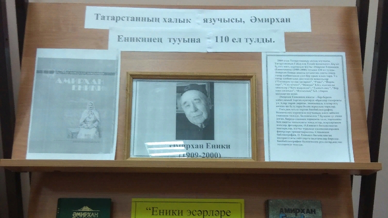 3 марттан китапханәдә татар язучысы Әмирхан Еникиның тууына 110 ел тулу уңаеннан “Еники әсәрләре үлемсез, анда үз асылыңа кайту бар” дип исемләнгән китап-күргәзмә эшли башлады.